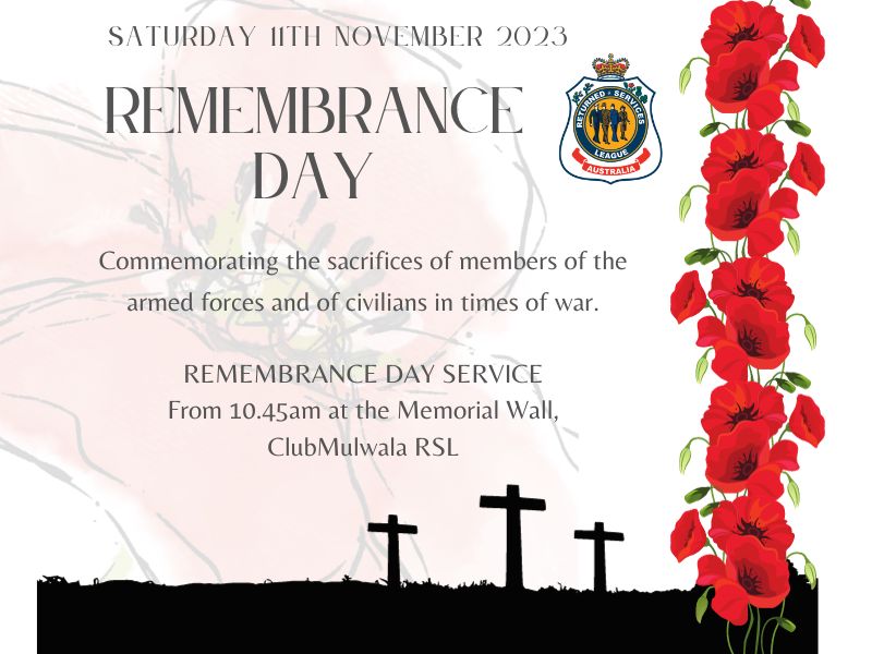 Yarrawonga Mulwala RSL Sub-branch & ClubMulwala Outdoor Bowls present REMEMBER OUR HEROES BOWLS TOURNAMENT Sunday 30 April 2023. All Welcome!