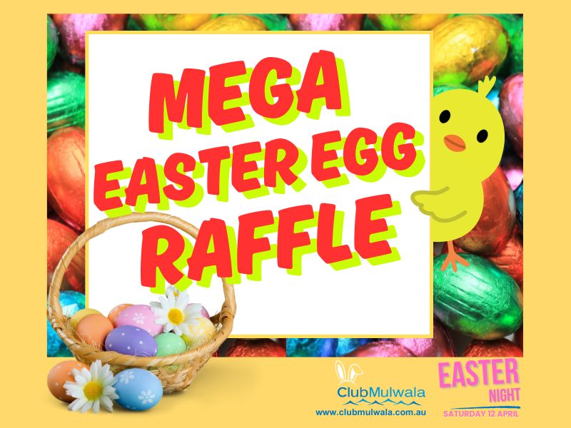 Celebrate Easter with us at the ClubMulwala Easter Night, featuring a Mega Easter Egg Raffle plus Happy Hours, Member Draw and great Entertainment.