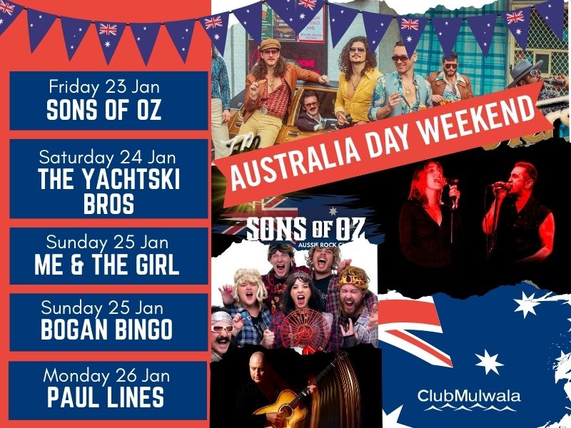 Enjoy an awesome range of entertainment on the "Australia Day Weekend" at ClubMulwala! All Live & Free!